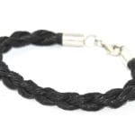 Dieses Pferdehaarschmuckstück wird aus bis zu 42 einzelnen Strängen zu einem dicken Armband in runder Form geflochten. Eine sehr aufwändige Arbeit die viel Geduld verlangt. Wenn Sie sich dieses markante Pferdehaararmband aus dem Schweifhaar Ihres eigenen Pferdes anfertigen lassen wollen benötige ich eine ordentliche Strähne Ihres Lieblings.