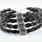 Rundgeflochtenes Pferdehaar Armband der Stärke MEDIUM. In der Mitte befindet sich eine geschwärzte Silberhülse mit ansprechendem Schlangendekor. Ein Schmuckstück das sowohl bei Männern, als auch bei Frauen, sehr beliebt ist.