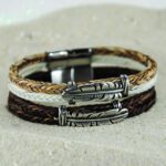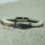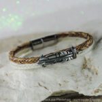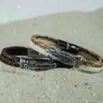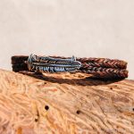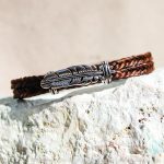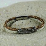 Bei diesem schönen Armband werden zwei square (vierkant) geflochtene Stränge nebeneinander gelegt und mit einem Slider in Form einer Feder fixiert.