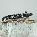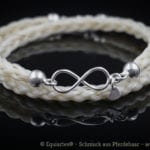 Schweifhaararmband INFINITY, das Herzstück unserer Kollektion. Dieses Symbol, auch Lemniskate oder liegende Acht genannt, steht für Anfang und Ende, Balance, Harmonie und Unendlichkeit. Es ist Ausdruck immerwährender Verbundenheit und Liebe. In unterschiedlichen Kulturen wird und wurde die liegende Acht mit Erfolg und dem “im Fluss sein” assoziiert. Auch heute begegnet uns dieses interesannte Symbol wieder häufig, gerade in Form von Schmuckstücken und Accessoires.
