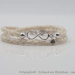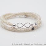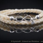 Uns war beim Entwickeln dieses schönen Schmuckstückes aus Pferdehaar wichtig dass das Symbol nicht unterbrochen wird. So haben wir lange getüftelt und ausprobiert und sind letztlich mit dem INFINITY Wickelarmband in Serie gegangen. Mitlerweile wird es hundertfach getragen und geliebt. Es ist ein ganz besonderes Schweifhaarmodell das uns sehr glücklich macht.