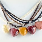 Mookait hat ein breites Farbspektrum, es reicht von hellcreme über beige ins gelblich ocker, von rot über rosé bis hin zu bordeaux, lila und braun-Schattierungen. Für unsere bauchigen Herzen haben wir Mookaite in honigfarben, creme und bordeauxroten Tönen ausgesucht. Jeder Stein, jedes Herz ist ein Unikat, keines gleicht dem Anderen aber alle sind wunderschön.