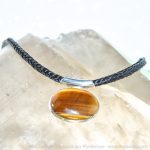 Die vierkant (square) geflochtene Halskette aus Pferdehaar trägt ein in 925 Silber gefasstes Tigerauge. Der Stein ist besonders bei Herren sehr beliebt. Jedes Stück ist ein Unikat und kann in Form und Farbe leicht von der Abbildung abweichen. Der Schmuckstein sitzt fest auf dem geflochtenen Band und ist auf der Rückseite offen.