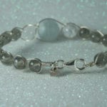 Dieser außergewöhnliche Armreif ist handgearbeitet. In 925 Silberdraht “gewrappte” Schmucksteine: Aquamarin, Crushed Crystal (Bergkristall) und Labradorith.