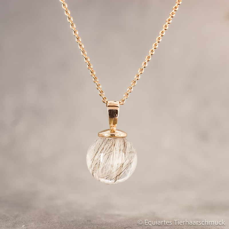 Wertvoller Kugel-Anhänger gebohrt mit einer Haarsträhne oder dem Fell des eigenen Tieres. Die Kugel ist in 14 Karat Echtgold gefasst und besticht durch die hochwertige Verarbeitung und die Langlebigkeit des edlen Materials.